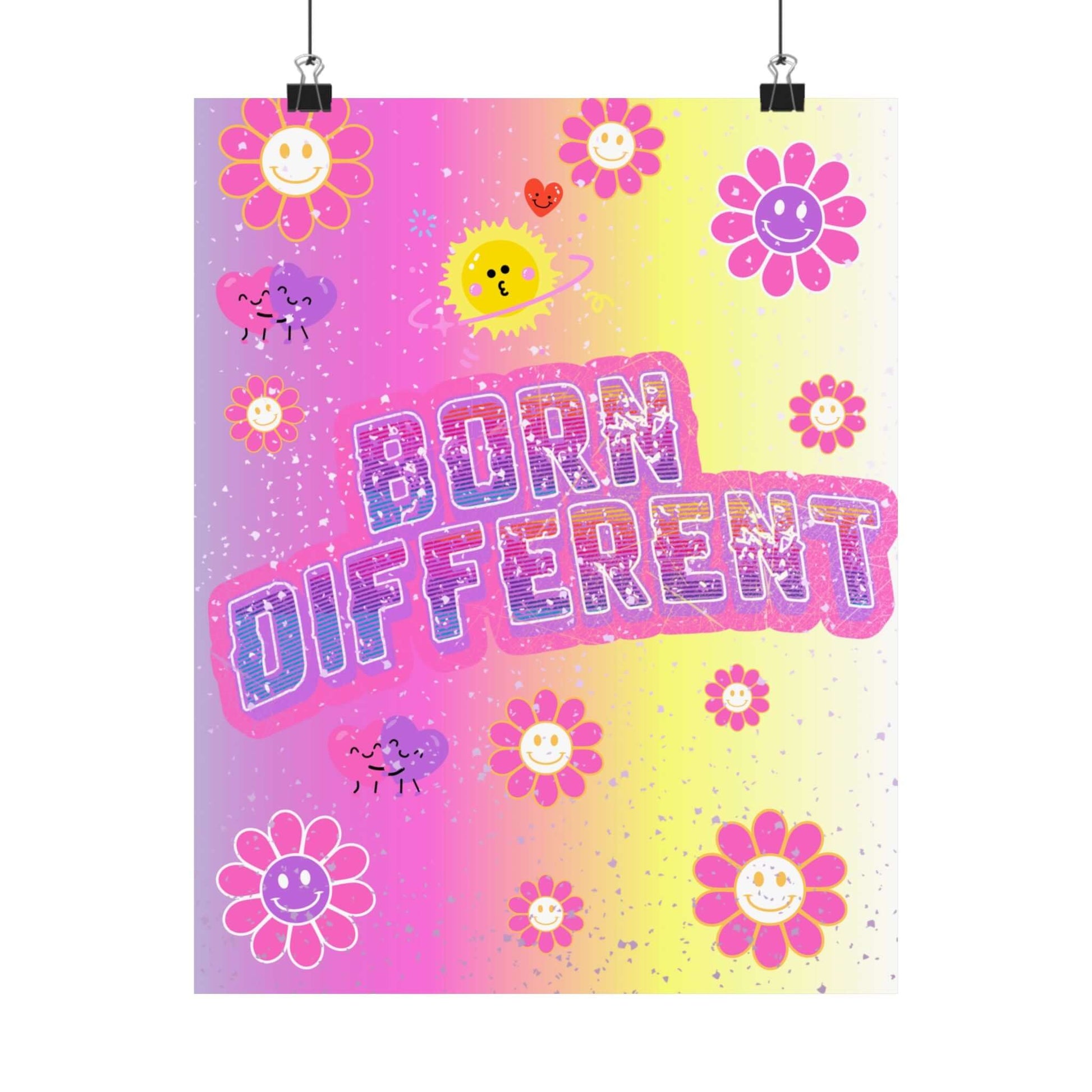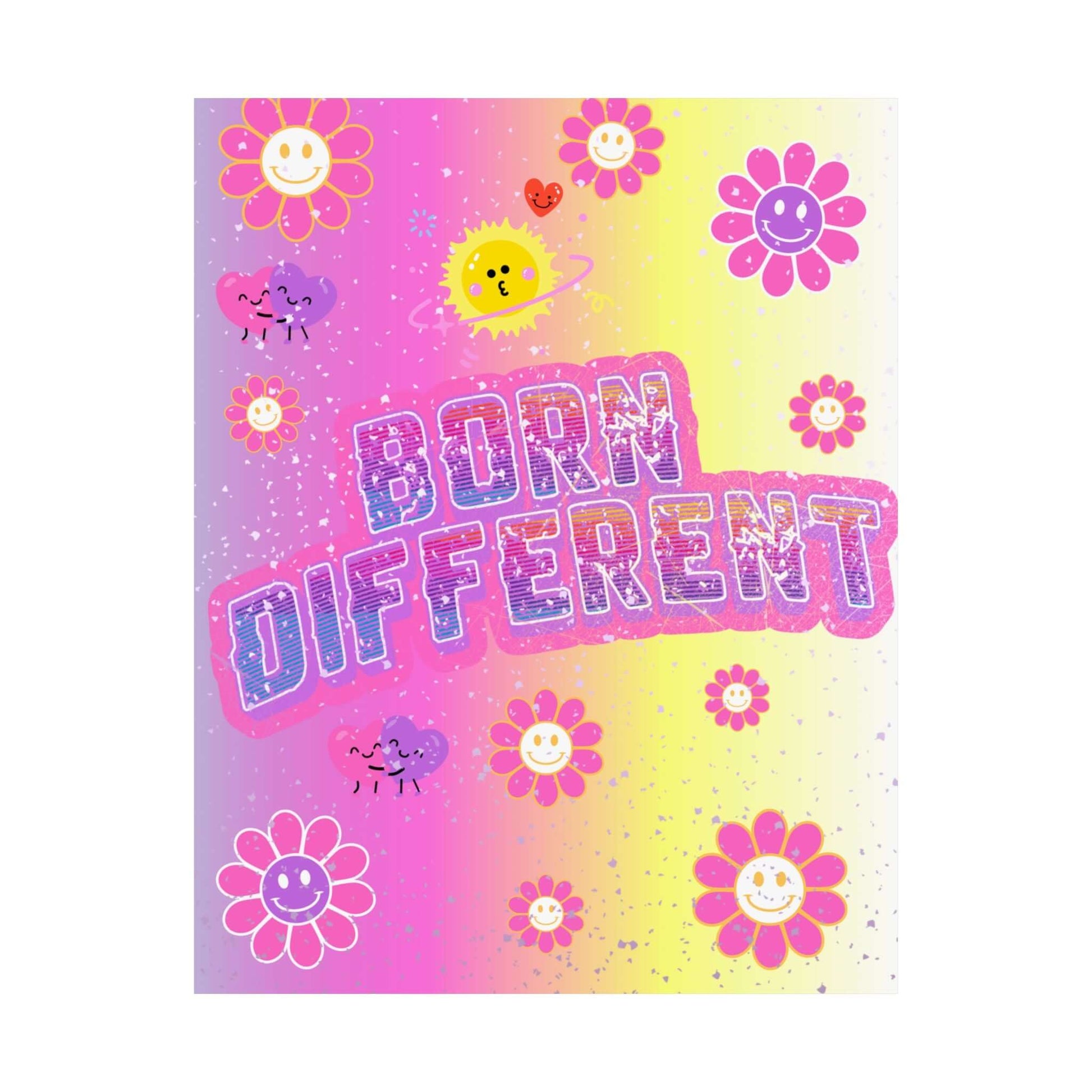 Born Different Poster — Colorful Retro Smile Flower Matte Wall Art