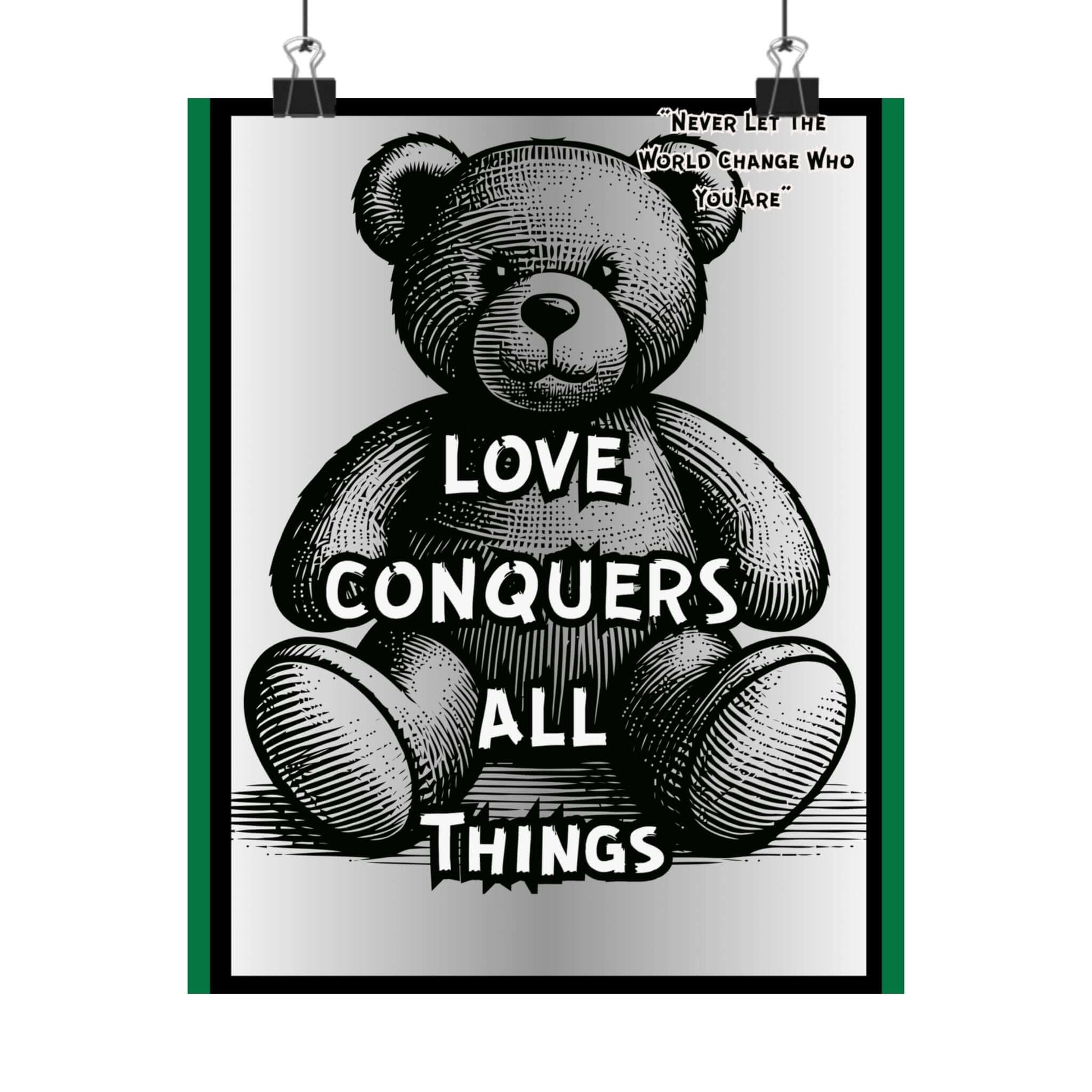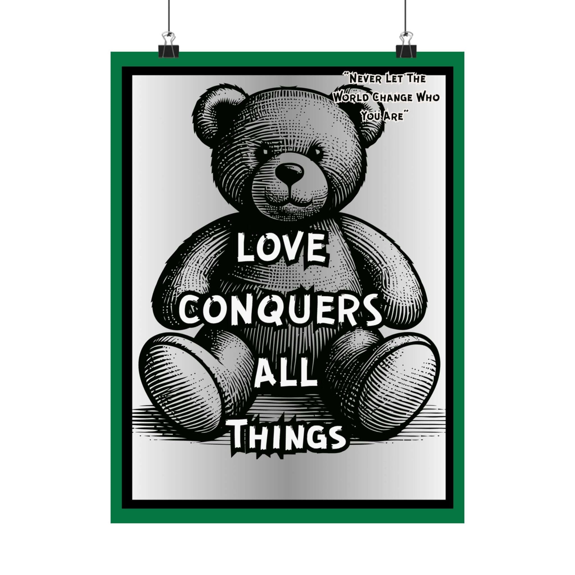 Love Conquers All Things Teddy Poster — Matte Vertical Inspirational Wall Art